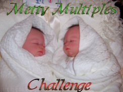 Christmas 2005 - The Merry Multiples ChallengeNow that Thanksgiving is behind us, it's time to think of Christmas. Our challenge is set on, or immediately before the big day. In this challenge you're writing about multiples. Multiples is the catch-all term for babies born at the same time from the same parents, ftr. Pick twins, pick triplets, heck pick dectuplets if you want! Just as long as it's a set of babies or kids, the number you chose is up to you. The directions are a bit verbose since I want to anticipate and address likely questions now, so I've bolded the important parts of the Challenge Elements: