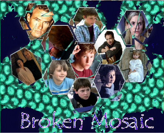 | Title: Broken Mosaic Author: Neoxphile Rating: R, probably Category: MSR, kidfic Disclaimer: Mulder, Scully, William, Maggie, Doggett and Reyes belong to Chris Carter. Most of the other characters are mine. Summary: In December of 2012 Mulder and Scully put aside ten years of differences to help their son when he needed them most. In 2014 one threat destroys the new lives they’ve built for themselves. What happens when worlds fall apart a second time? Author’s notes: sequel to Only Because He Needed Us; Kids' ages - William 13, Benji 10, Owen 8, Kyle 6, Avery 4, Delaney 2 Last update: 10-23-07, chapter 14 and epilogue Prologue Early in the fall of 2014 a flu epidemic broke out in the UK, originating near London. The new strain had an unusually long incubation period, which led to many people coming in contact with infecteds before a quarantine was considered. A month later, the epidemic had swept the globe. Death tolls were massive in nearly every country. 107,000 Americans lost their lives, despite a heroic effort to develop a vaccine. The populations most heavily hit included the elderly, and those in close contact with them, like those in the medical and human services fields, as well as the airline industry, and its passengers, which unwittingly served as a means for the virus to cross oceans. The media also suffered heavy losses, because reporters who investigated the outbreak in its infancy returned to media outlets across the country while unknowingly infectious. With one in three hundred Americans cut down by the deadly virus, few lives were untouched by the stain of tragedy. Most people knew a person who had died. Some people knew more. New Mexico October 17th, 2014 Delaney wept in Mulder’s arms, her face pressed up against his shoulder, wetting it with tears. William shifted his grip on Avery's small hand, and glanced over at his baby sister in envy. He wished he too was small enough to be held and comforted that way. But his father only had two arms, so he and his four brothers stood together in silence, each dressed darkly, each looking at the casket in front of them. It wasn’t fair. Cat hadn’t even been his real mother, but his stepmother, and her death hurt so badly… how would the other kids cope? She was their mother. He’d had three mothers in his life, but they’d only had one. Now they had none. The funeral was unbearable, and the worst thing was that as soon as it was over, he and his father would be going to the airport to fly to Washington DC. Tomorrow there’d be another funeral. Shaking his head softly, William wasn’t sure if he could stand to see his mother cry, too. Washington DC October 18th, 2014 As soon as Scully saw them, she rushed forward as quickly as her feet would carry her and engulfed William in a hug. He was only about two inches shorter than she was and he wasn’t sure if that or her tired appearance surprised him more. It seemed to him as though she hadn't slept at all in the eight weeks since he'd flown back New Mexico. The last glimpse he'd had of her then was of her leaning forward to wave to him though the airport window, while Ethan's protective arm around her waist kept her from falling. Ethan. Although he was sad for his mother’s sake, it was hard to muster up much grief for the dead man himself. It wasn’t as though he’d disliked his stepfather, but only that he’d barely gotten to know him. They’d met for the wedding a year ago, and lived together over the summer because William had been spending summers with his mother since they’d reconciled, but he and Ethan had politely stayed out of each other’s way for the most part. He’d been an okay guy, good to his mother, and that’s about all William had cared about. It was good to see her happy, like his father was. Except now both Cat and Ethan were gone, and his parents looked like they half wished they were too. Something stirred in his memory as his mother led the way to the baggage corral. On a windy beach almost exactly two years earlier, his father told him, Benji, and Owen about the X-Files and all the strange things he and Scully had seen over the years. It was Mulder's confession that he'd been buried that the boy was thinking of. He suddenly got a clear mental picture of his mother grieving then, expecting a baby at that time too, just as she was now. He wondered if she’d looked so careworn when she’d carried him. There’d been a funeral then as well, but unlike his father, there was no chance that Ethan would be resurrected later on. And now the baby she expected wasn't nestled under her heart. Sighing, he decided it was probably better for her health that a surrogate carried that burden for her. Walking a little quicker, he caught up to her and squeezed her arm. It had to be hard to associate death and birth the way she had to. A few months ago she was thrilled that the experiment she'd volunteered for had been successful, meaning that she and Ethan were going to be parents. What could she be feeling now? Giving her a small smile, he silently vowed to be there for her as much as he could, so it would be easier on her. This time. He owed her that much. // End Prologue Chapter One Seven months earlier New Mexico Snow fell from the sky at a furious rate. Their father said it was because of a global climate shift, but they didn't really care. As far as they were concerned that much snow was a gift from mother nature, or maybe God. William was nearly as enthusiastic about the unexpected snow as he siblings where. His spirits had been high all day because a girl he liked had accepted his invitation for the school dance being held later that night. The cold was making William's cheeks a rosy red, but he scarcely noticed, but it alarmed him a little that Delaney's face was almost as pink as her snowsuit. His little brothers weren't quite as fair, so their faces weren't as pink as his, but given only William and Delaney had inherited fair skin from the